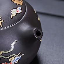- The dragon and phoenix designs are made with color-changing materials. Avoid placing the teapot in sterilizers or using boiling methods to clean it.